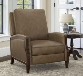 Lia Mid Century Gray Comfy Genuine Leather Manual Push Back Recliner with Solid Wood Frame Handrail$150Murrieta, CA