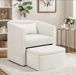 Len Beige Chenille Upholstered Accent Chair Open-Design Hollow Base Armchair with Multifunctional Storage Ottoman$130Murrieta, CA