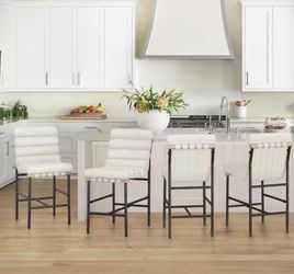 26" Beige Fabric Upholstered Counter Height Bar Stool Black Metal Legs Counter Stools w/ Tufted Back & Cushion Set of 4$200Murrieta, CA
