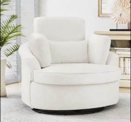 Cyris Oversized White Chenille Upholstered Swivel Accent Chair with 3 Removable Pillows Barrel Chair$200Murrieta, CA