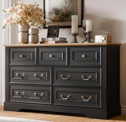 Cozy Castle 7 Drawer Dresser, Farmhouse Chest of Drawers for Bedroom, 54" Wide Dresser with Retro Metal Handles, Wood Drawer Organizer TV Stand for Li$150Murrieta, CA