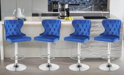 Set of 4 Adjustable Swivel Bar Stools, Velvet Upholstered Counter Height Chairs with Nailhead Trim,$200Murrieta, CA