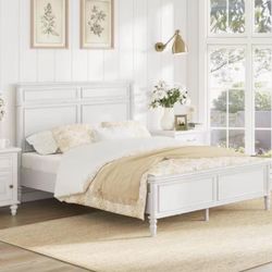 Xmas Flash Sale Atila Distressed White Modern Crown Molding Solid Wood Frame Queen Size Platform Bed$100Murrieta, CA