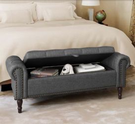 Cerella 50 in.Carbon Gray Tufted Fabric Upholstered Storage Bedroom Bench Rolled Arm Button Tufted Storage Ottoman$75Murrieta, CA