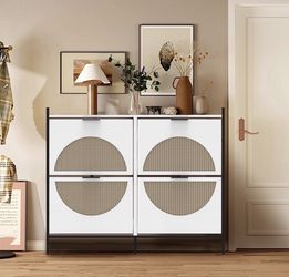 White Rattan Shoe Cabinet Organizer with 4 Flip Drawers, Large Thin OrganizerWhite$90Murrieta, CA
