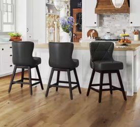 Hampton 26 in. Black Solid Wood Frame Counter Stool with Back Faux Leather Upholstered Swivel Bar Stool Set of 3$160Murrieta, CA