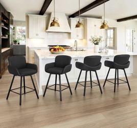 LUE BONA 26" Swivel Bar Stools Set of 4, Counter Height Bar Stools with Backrest and Arms, Modern Upholstered Barstools with Metal Legs for Kitchen Is$200Murrieta, CA