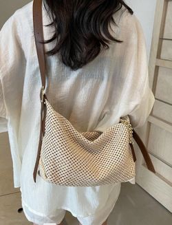 Summer Straw Woven Bag Vintage Chain Zipper Shoulder Bag Beige$21Canoga Park, CA