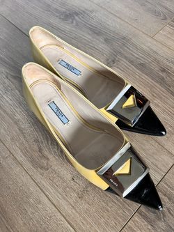 Prada Cream and Black Flats with Metallic Ornament$175Kissimmee, FL