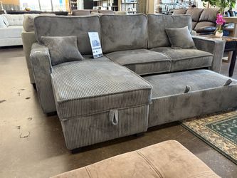 Gray Corduroy Sectional with storage ottoman$795North Highlands, CA