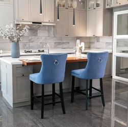Solid wood legs 26.3inch velvet upholstered bar chair, ties tufted color: and nail headdress edge, very suitable for kitchens, cafes, bars, blue.$90Rosemead, CA