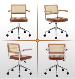 Modern home office chair leather desk color: chair, with natural rattan backrest, Brown height-adjustable computer work chair.$80Rosemead, CA