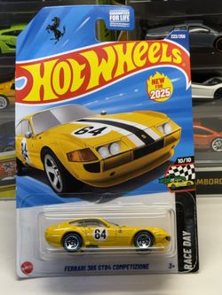 🇮🇹HOT WHEELS 2025 - Yellow Ferrari 365 GTB4 Competizione - 10/10 Race Day - 222/250 - Toy 1:64 🇮🇹$9Orange, CA