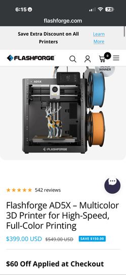 Flashforge AD5X – Multicolor 3D Printer for High-Speed, Full-Color Printing$175Marysville, WA
