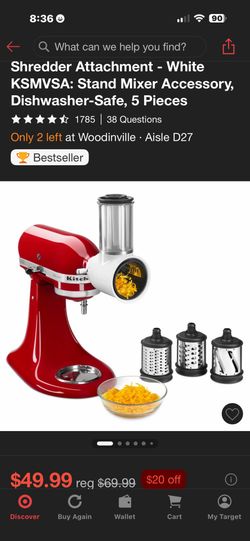 Shredder Attachment - White KSMVSA: Stand Mixer Accessory, Dishwasher-Safe, 5 Pieces$40Marysville, WA