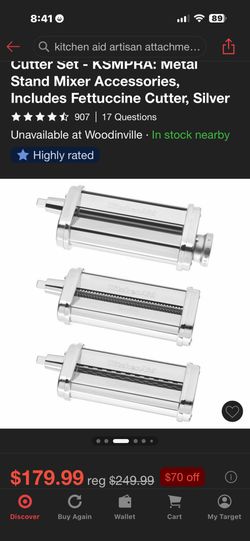 KitchenAid 3pc Pasta Roller & Cutter Set - KSMPRA: Metal Stand Mixer Accessories, Includes Fettuccine Cutter, Silver$170Marysville, WA