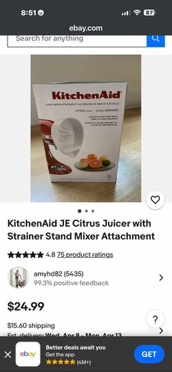 KitchenAid JE Citrus Juicer with Strainer Stand Mixer Attachment$20Marysville, WA