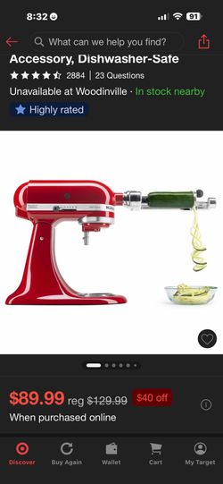 KitchenAid Spiralizer Attachment with Peel, Core and Slice - KSM1APC: Metal Stand Mixer Accessory, Dishwasher-Safe$80Marysville, WA