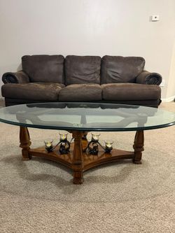 Vintage Oval Glass Top Coffee Table with Candelabra Base(heavy glass tap ) Rare / One of a kind$200Orlando, FL