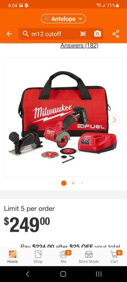 Milwaukee M12 FUEL CORDLESS 3" CUTOFF SAW$135Citrus Heights, CA