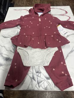 NWT Carters 3 piece Set With Hoodie In Dark Pink Size 6M $17Upr Makefield, PA