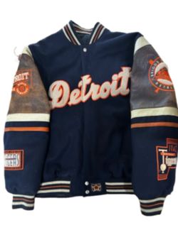 Vintage JH Design Detroit Tigers MLB Wool Body Distress Leather Sleeve Jacket 2XL$220Southfield, MI
