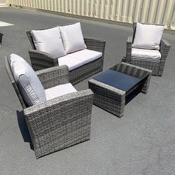 (Brand New) $295 Outdoor 4pcs Patio Wicker Set, Rattan Sofa Loveseat 48x26”, Armest Chair 29x26”, Table 34x20” $295Montebello, CA
