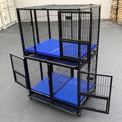 (Brand New) $370 Stacking Dog Cage (Set of 2) Heavy Duty 41x31x65” Crate Kennel w/ Plastic Tray, Wheels $370Montebello, CA