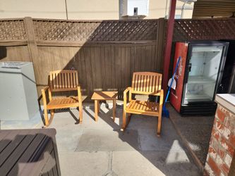 Patio Wood Rocking Chairs With Table. 1yr Old. Great Condition $175Los Angeles, CA