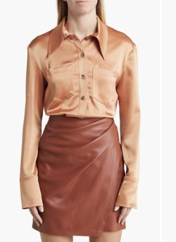 Nanushka Luxury Tupsa Wide Leg Pants & Tippi Satin Blouse Set Metallic Gold Size S$290Castle Rock, CO