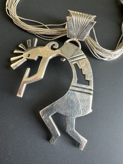 Huge Kokopelli Sterling silver signed liquid silver necklace 52+g$165Oceanside, CA