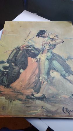 The Matador and Bull signed oil painting set of 2 Includes Painted Sun Fan$30Littleton, CO
