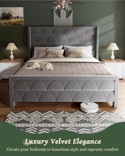 King Size Bed Frame with 56" Headboard - Velvet Upholstered Wingback Platform Bed Frame, Noise Free, Sturdy Wooden Slat Support (Deep Gray, King$250Warner Robins, GA