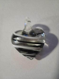 Art Glass Pendant Clear Glass Heart Black White Stripes 1.5" Glass Bale SHIPS FREE paid thru PayPal$15Howey In Hls, FL