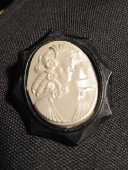 Vintage Black & White Cameo Pin Brooch Plastic Lucite Silhouette Female$15Howey In Hls, FL