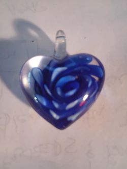 Glass Blown Heart Pendant For Jewelry Making Transparent W/ Blue Floral Design...SHIPS FREE $15Howey In Hls, FL