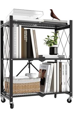 3 Tier Foldable Metal Storage Shelf with Wheels, 300 LBS Heavy Duty Collapsible Wire Shelving Unit, Rolling Utility Rack Cube Bookshelf for Kitchen Pa$35Brooklyn, NY