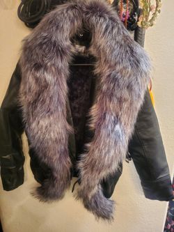 New Medium Black leather faux fur trimmed Jacket$50Riverside, CA