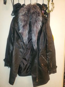 New XS Long faux leather Coat with removeable fur$60Riverside, CA