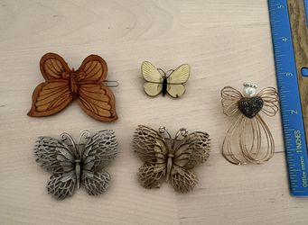 5 Vintage Butterfly Angle Brooch Pin Metal Leather Yellow $9Rockville, MD