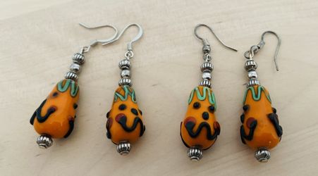 Handmade 2 Pairs Of Pumpkin Face Glass Halloween Earrings$8Rockville, MD