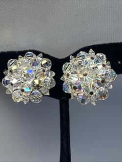 Vintage Laguna Signed Silver Tone AB Faceted Crystal Cluster Clip Earrings $12Edinburg, TX