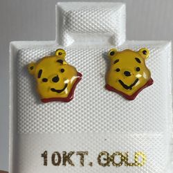 10k Yellow Gold Winnie The Pooh Stud Earrings With Butterfly $67Edinburg, TX