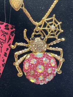 Betsey Johnson Pink Rhinestones Spider Gold Tone Pendant & Chain Necklace 24”$25Edinburg, TX