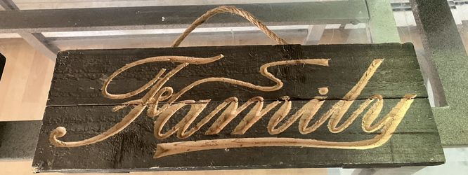 2 Wooden Hand Carved/Made Signs “Family” “Happy”$15Grafton, WI