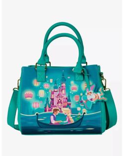 LOUNGEFLY DISNEY TANGLED CASTLE LANTERNS GLOW IN THE DARK SATCHEL BAG PURSE NWT$65North Miami Beach, FL