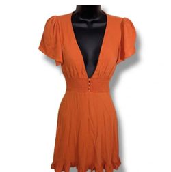 Small Forever 21 Brick Dress Deep Vneck Short Puff Sleeve Retro Ruffle Orange $15Menifee, CA