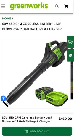 Brand New Sealed Greenworks 60V 450 CFM Cordless Battery Leaf Blower w/ 2.0Ah Battery & Charger$125Hayward, CA