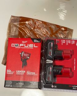 Milwaukee M12 Fuel 1/2 Impact Wrench w/Pin Detent up to 550 ft lbs + 2 new batteries$270Irwindale, CA