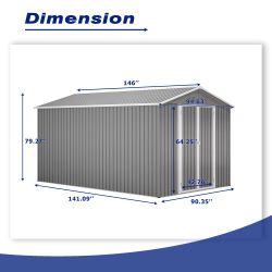8 x 12 FT Outdoor Storage Shed, Large Metal Tool Storage with Aluminium Frame and Lockable Doors, Storage for Backyard Garden Patio Lawn, Grey$525San Bernardino, CA